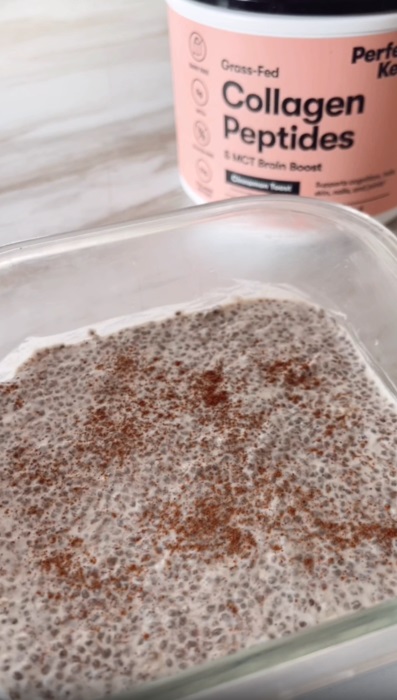 This Cinnamon Roll Chia Seed Pudding tastes like a cozy cinnamon roll but with protein, healthy fats, and no sugar crash. Made with Perfect Keto Cinnamon Toast Collagen, warming cinnamon, and a splash of almond and vanilla extract, this overnight pudding sets into a creamy, nourishing breakfast or dessert.